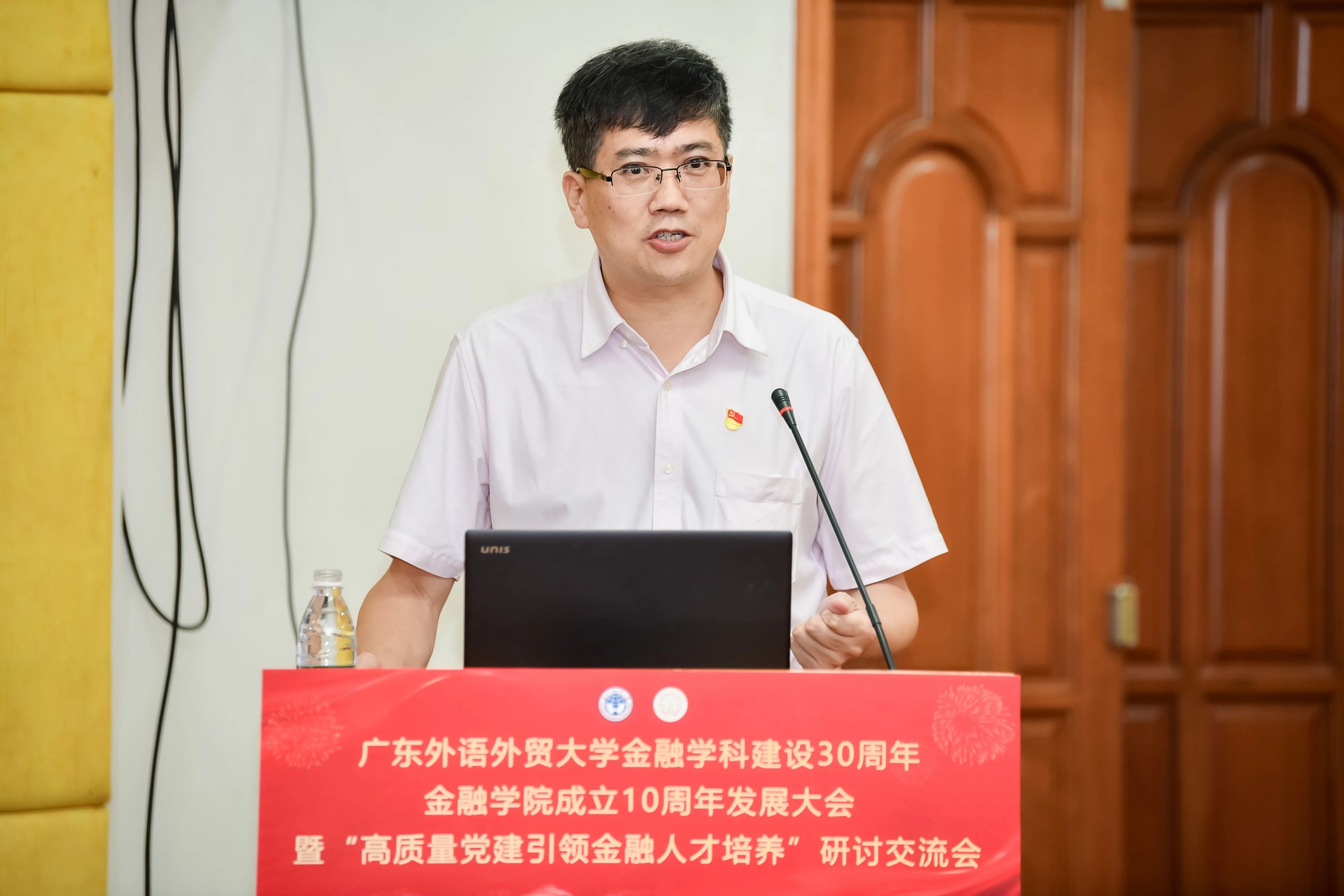 党委副书记唐锐代表学校致辞。他对参加本次研讨会的各位领导和同仁表示热烈的欢迎和诚挚的感谢,并表示希望借此宝贵机会,与广州地区金融学科相关院系,还有从北京远道而来的领导专家一道,共同探寻党建育人工作的新思路、新路径,为学校“金融人才培养”改革赋能,推动形成“理念共识、资源共享、学科共建、合作共赢”的交流合作新格局,共同谱写高质量党建引领金融人才培养新篇章。